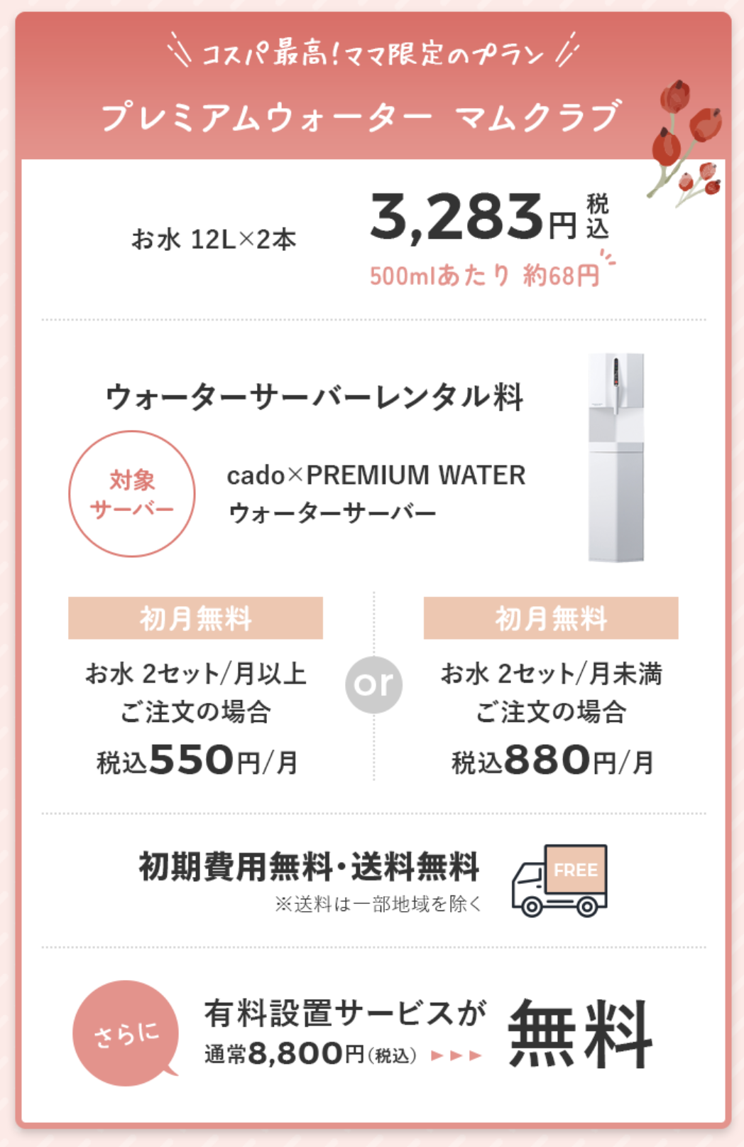 そして実は、ウォーターサーバーは毎日コップ2杯~使えます。