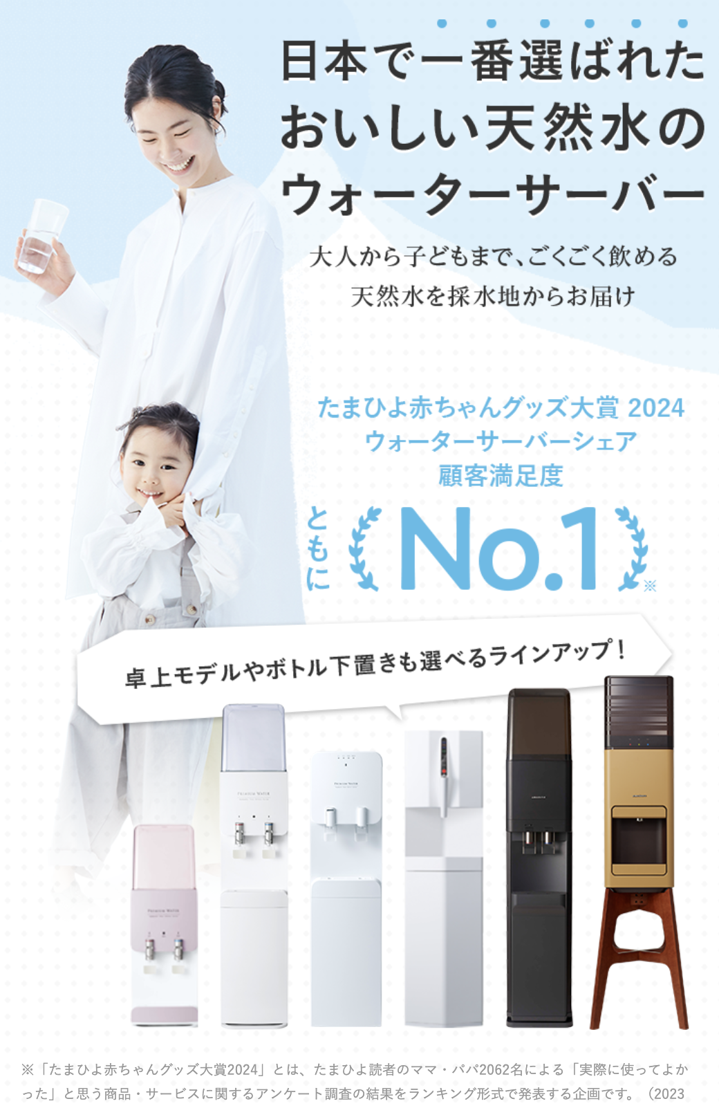 【申込殺到中】上野樹里さんがブランドアンバサダーに就任!当サイト人気No.1の「浄水型ウォーターサーバー」エブリィフレシャスは、水道水を注ぐだけでおいしい水がいつでも楽しめます。おしゃれなサーバーデザインの他、業界トップクラスの機能性もポイント。何よりも月額3,300円で使い放題の圧倒的なコスパが魅力!なんと今なら、初月無料で始められます♪