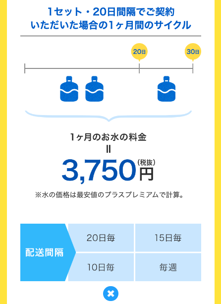 では、人気のあるウォーターサーバーの1回あたりのお水の配送量を見てみましょう。