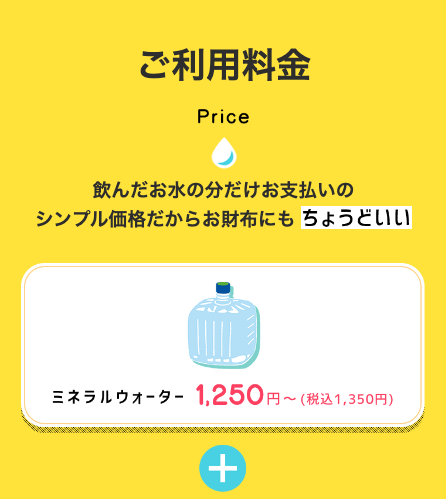 一般的なウォーターサーバーの天然水が約85円/500mlなので、コンビニでペットボトル(約150円)を買ったときと比べて、約半額に抑えることができますよ。