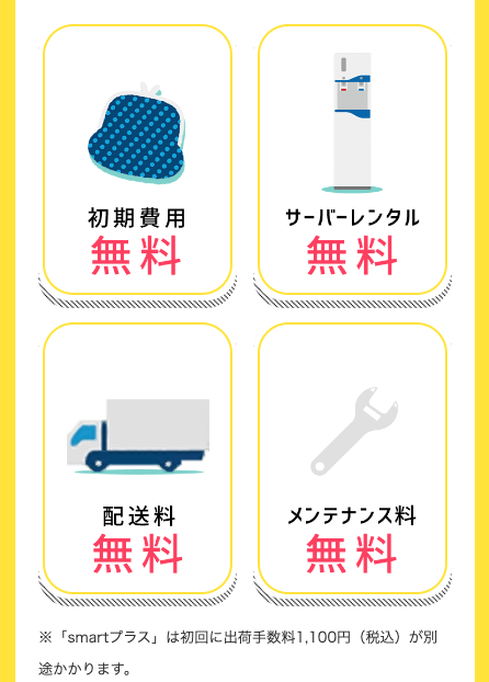 水の種類 天然水 配送料 全国無料 水の容量 4.7L/7.2L/9.3L サーバーの種類 31種類 デザイン ★★★★★ 機能性 ★★★★★ 月額料金 3,254円~